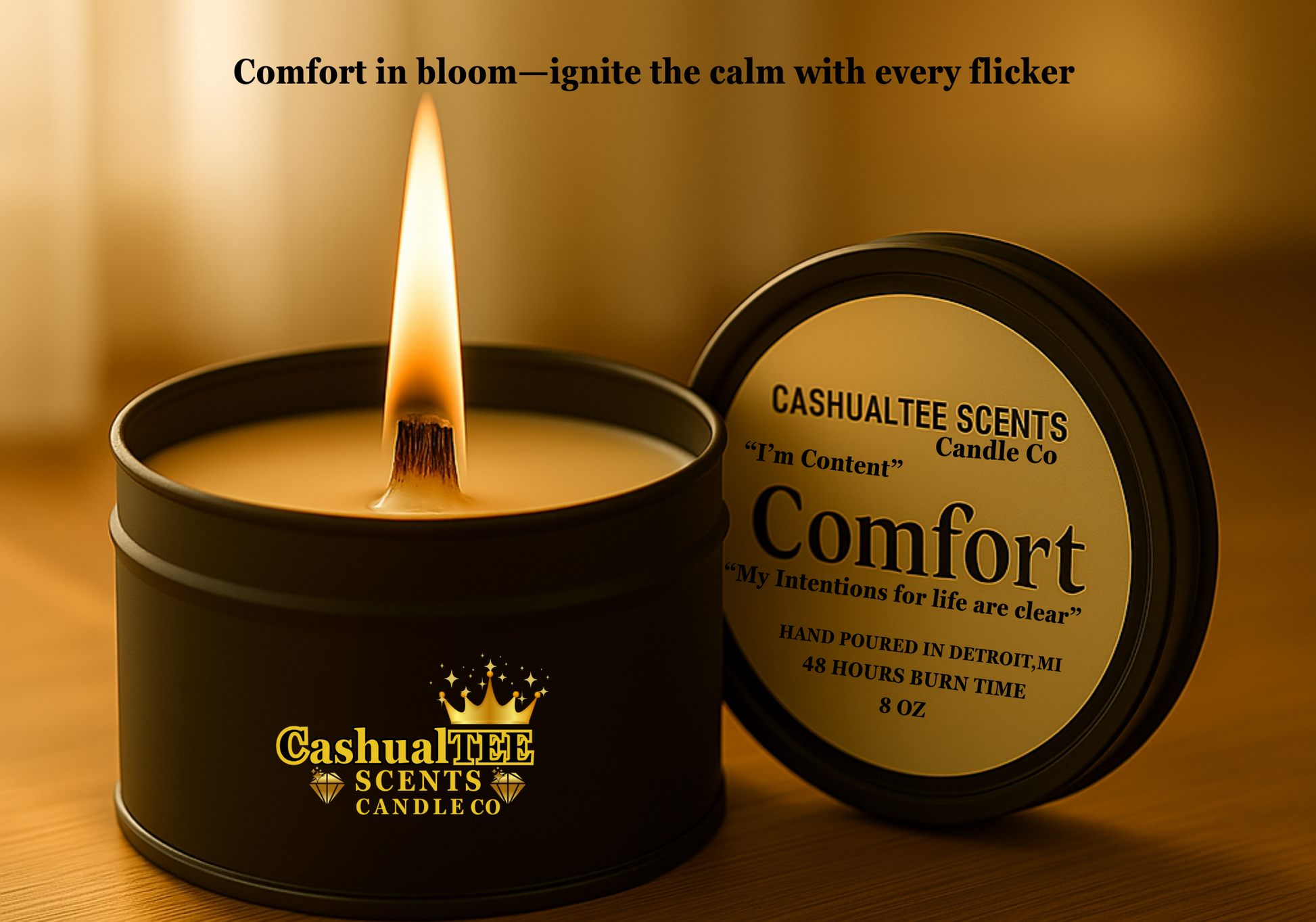 🕯️ 8 oz | Wooden Wick | 55 Hours Burn Time ✨ Hand-poured with care in Detroit, MI 🌿 Clean-burning | Eco-friendly | Luxurious scent throw